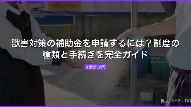 獣害対策に使える補助金の種類・申請手順・必要書類を徹底解説。電気柵・捕獲罠の購入補助から鳥獣被害防止総合対策交付金まで、農家・猟師が活用できる制度を網羅。