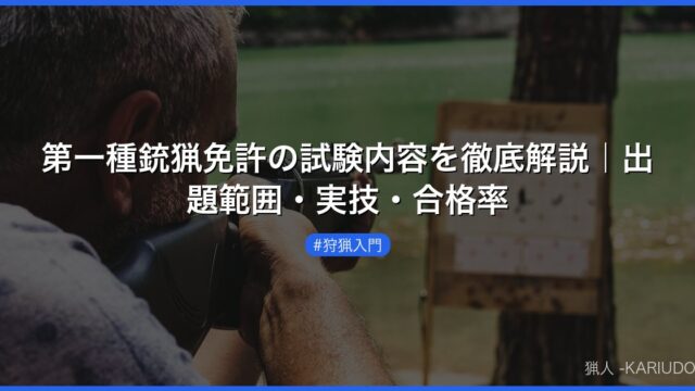 狩猟入門 第一種銃猟免許の試験内容を徹底解説|出題範囲・実技・合格率 第一種銃猟免許の試験内容を知識試験・適性試験・技能試験に分けて詳しく解説。出題範囲や合格基準、合格率、当日の流れまで網羅します。 2026.04.20 狩猟入門