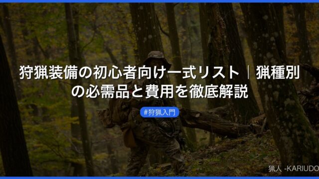 狩猟入門 狩猟装備の初心者向け一式リスト|猟種別の必需品と費用を徹底解説 狩猟初心者に必要な装備一式を猟種別(銃猟・わな猟)に完全網羅。費用の目安から季節ごとの選び方まで現場目線で解説します。 2026.04.18 狩猟入門